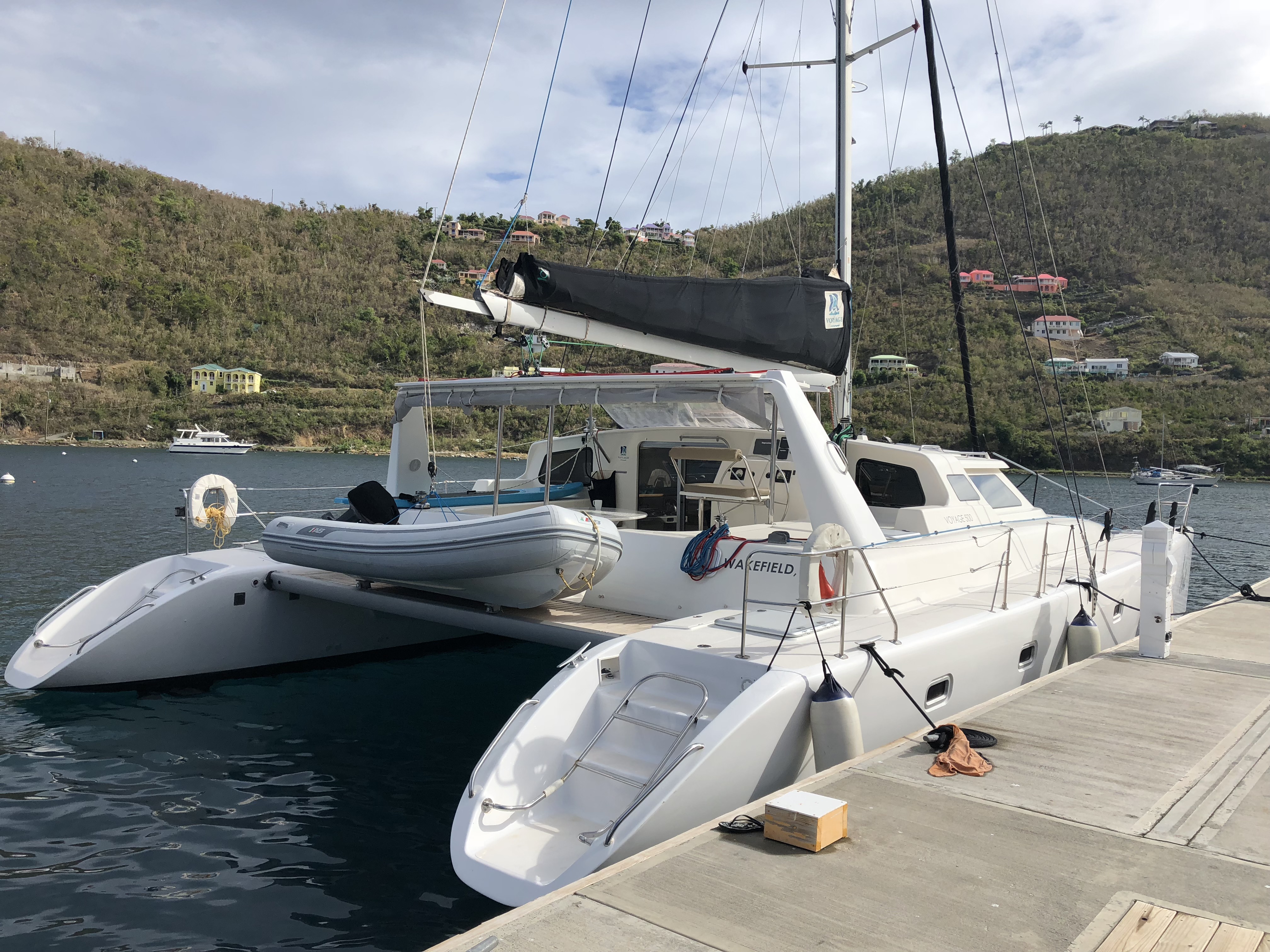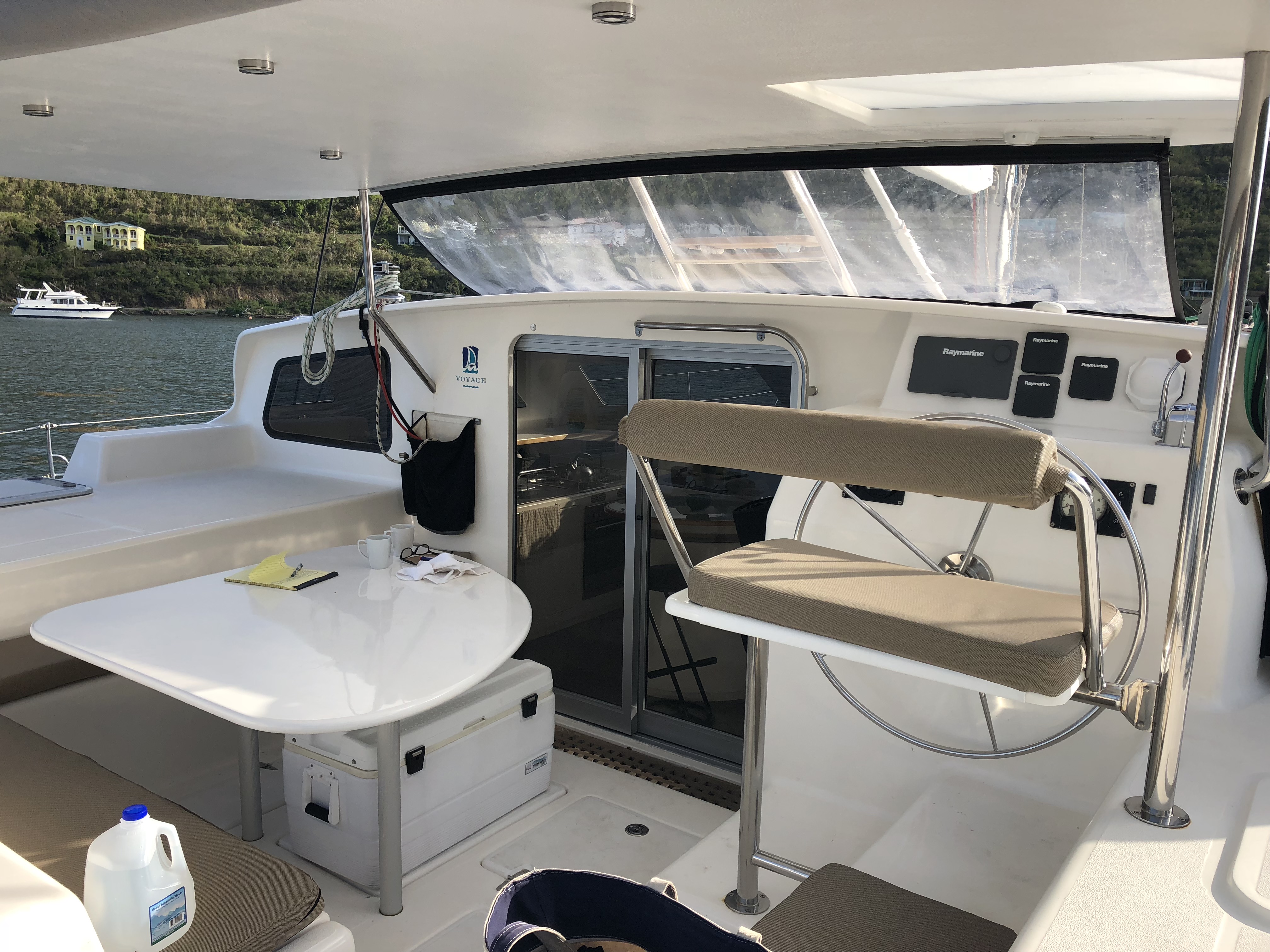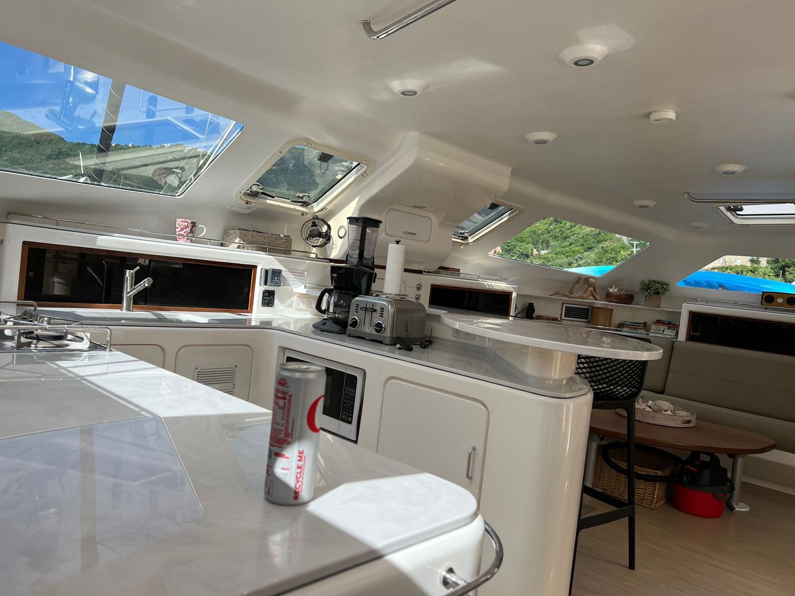 This 2008 Voyage 500 is a true blue water cruising catamaran, with an excellent layout for Long Term Charters. Fully equipped galley with oven, front-opening fridge, top-opening freezer, ice maker, and microwave.